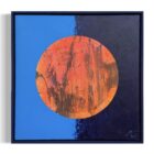 In Die Mondlandschaft zeigt Anna Lipski ihre abstrakt-reduzierte Seite und erschafft ein Werk, das durch grafische Klarheit und emotionale Tiefe gleichermaßen überzeugt. Im Zentrum des quadratischen Gemäldes steht ein großer, strukturierter Kreis in leuchtendem Orange-Rot – er wirkt wie ein fremder Himmelskörper, eine glühende Erscheinung im Spannungsfeld von Licht und Dunkelheit. Die Oberfläche des Kreises wurde mit einer Drucktechnik bearbeitet, wodurch eine lebendige, fast topografische Textur entsteht: Risse, Spuren, Schichtungen – wie eine Oberfläche, die Geschichten erzählt.