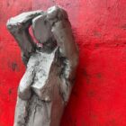 Das Werk entfaltet eine starke emotionale Wirkung. Die Figur steht aufrecht, die Arme über den Kopf erhoben – eine Geste zwischen Anmut, Hingabe und Stärke. Die Oberfläche der Bronze ist rau, bewusst unperfekt, voller Spuren des künstlerischen Prozesses. In Kombination mit der energiegeladenen Farbigkeit des Hintergrunds wirkt „Grazie“ wie ein Sinnbild weiblicher Würde und Ausdruckskraft. Die streng vertikale Komposition lenkt den Blick unweigerlich nach oben, erzeugt Spannung und zelebriert Körperlichkeit auf eine stille, respektvolle Weise.