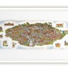 Typisch für diesen Grafik-Druck ist die Kombination aus kartografischer Übersicht und illustrativer Darstellung. Die Arbeit verbindet eine sachliche Erfassung der Stadtstruktur mit einer spielerischen, dekorativen Ausführung.
