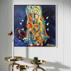 Das Werk „A Woman by Night“ von Leon Löwentraut ist eine Originalarbeit in Mischtechnik auf Leinwand. Das quadratische Format misst 70 × 70 cm. Es handelt sich um ein Unikat, das vom Künstler signiert und gerahmt ist.