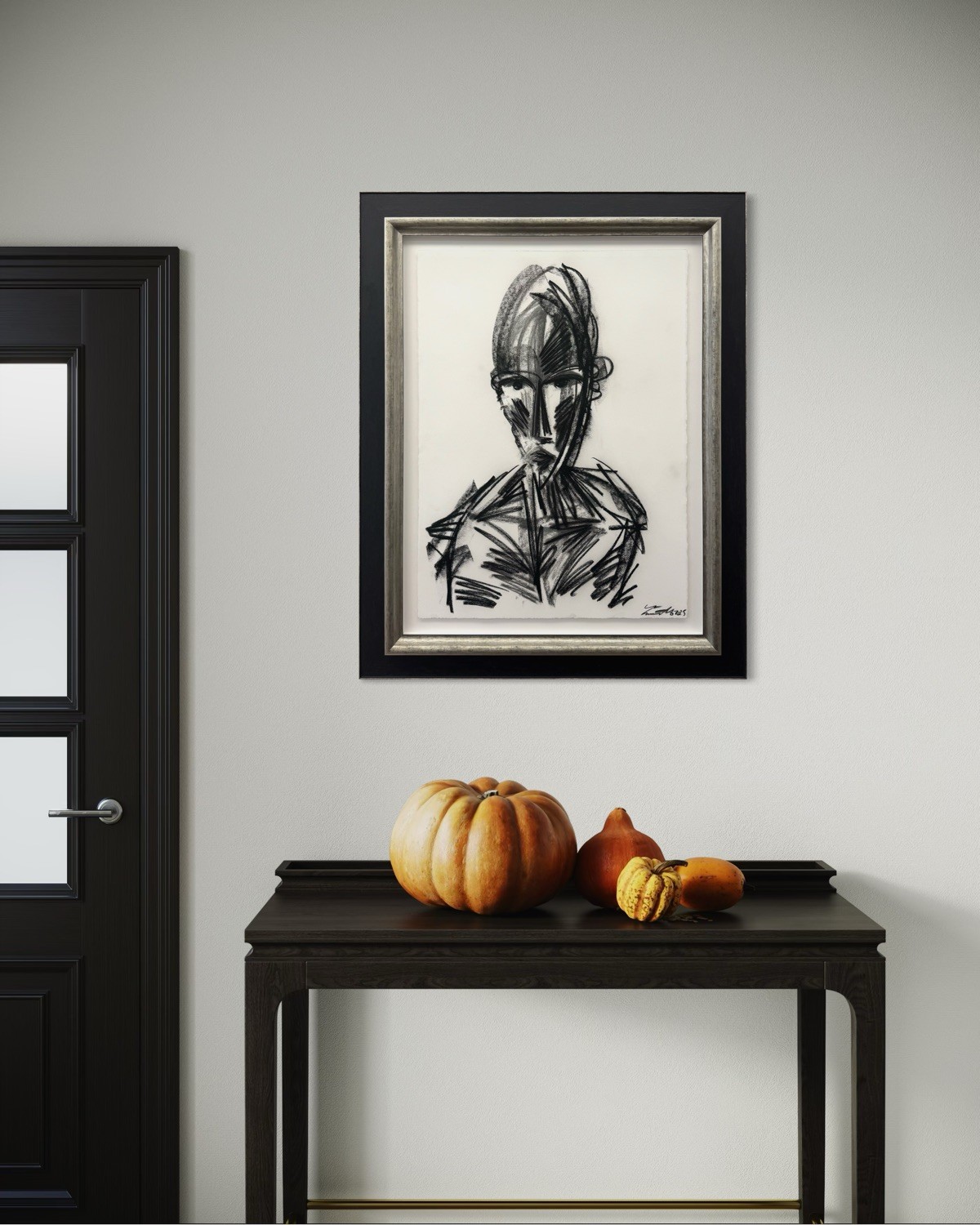 Das Werk „Jason“ von Leon Löwentraut ist eine originale Kohlezeichnung auf Papier. Das Blattmaß beträgt 56 × 75 cm. Es handelt sich um ein Unikat, das vom Künstler signiert und gerahmt ist.