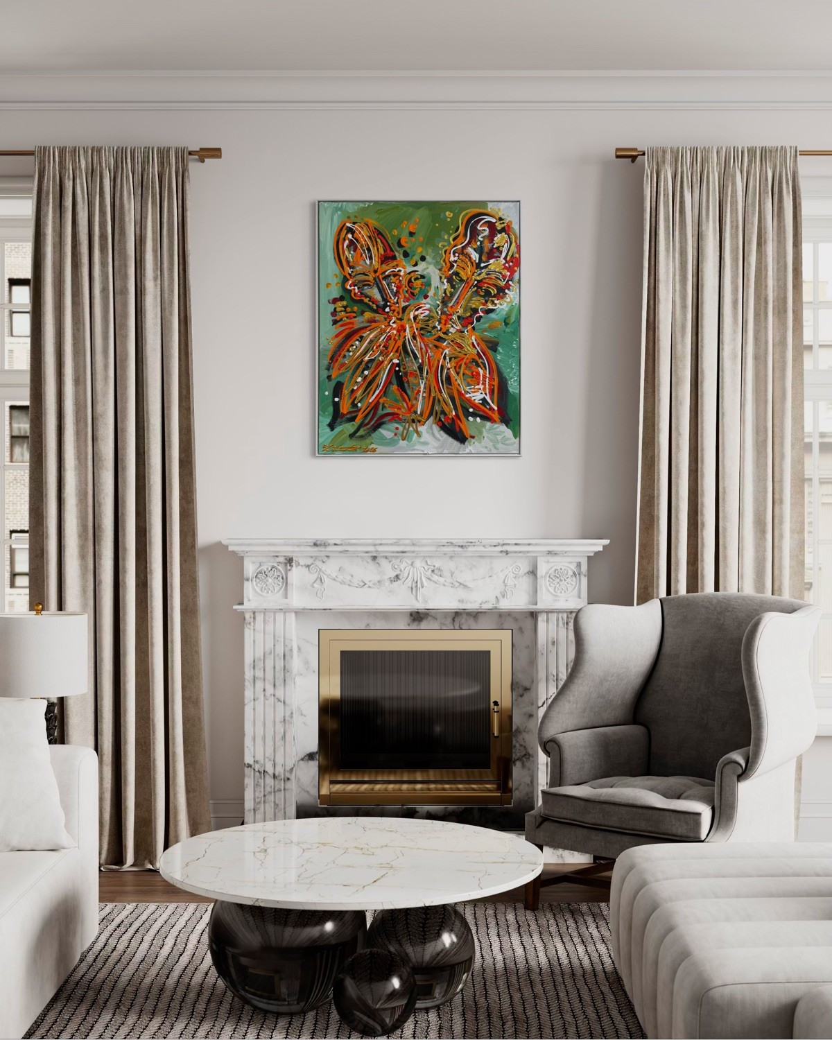 Das Werk „Twins“ von Leon Löwentraut ist eine Originalarbeit in Mischtechnik auf Leinwand. Das Format beträgt 80 × 100 cm. Es handelt sich um ein Unikat, das vom Künstler signiert und gerahmt ist.