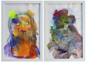 Neben einer Auswahl kleiner und mittlerer Originalarbeiten, die direkt von der Wand gekauft werden können, bietet sie eine ganz besondere Aktion an: Roberta zeichnet vor Ort individuelle Wunschmotive auf farbig gestalteten Hintergründen – zum Beispiel „Ihr Lieblingstier in meinem Stil“ oder sie lassen sich von Roberta in ihrem Stil porträtieren. Es entstehen persönliche Werke, die berühren, überraschen und sich perfekt als Geschenk eignen. Jede 20×30 cm Zeichnung wird signiert, datiert und auf Wunsch gewidmet.
